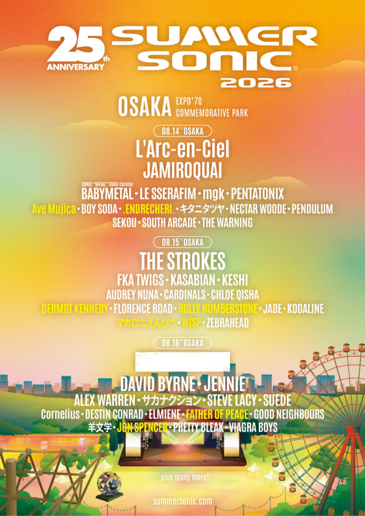 チケット情報、その他出演者などの詳細は「SUMMER SONIC 2026」公式サイトにてご確認ください。